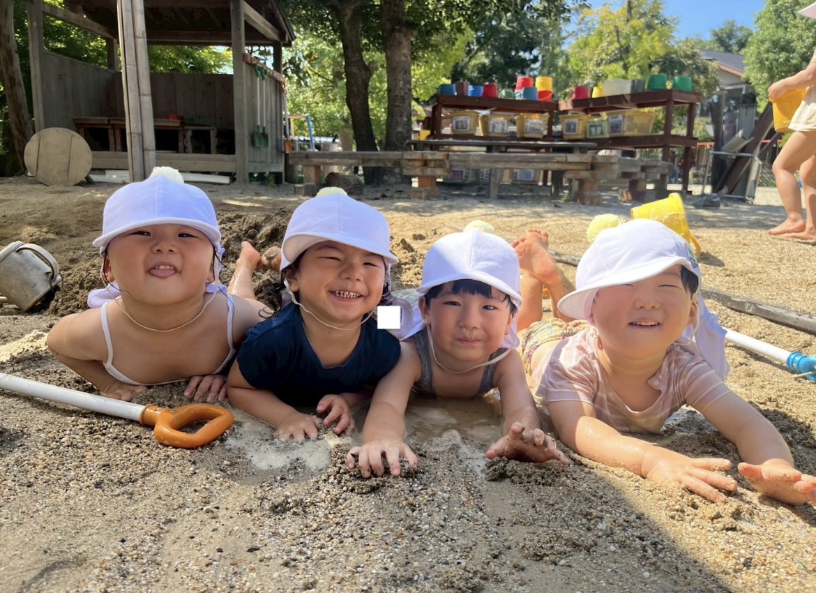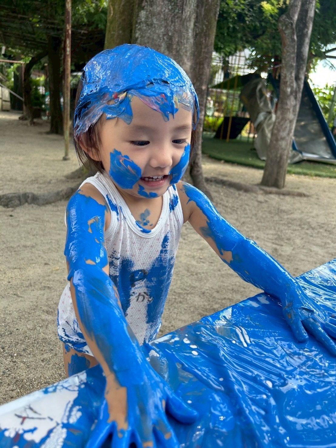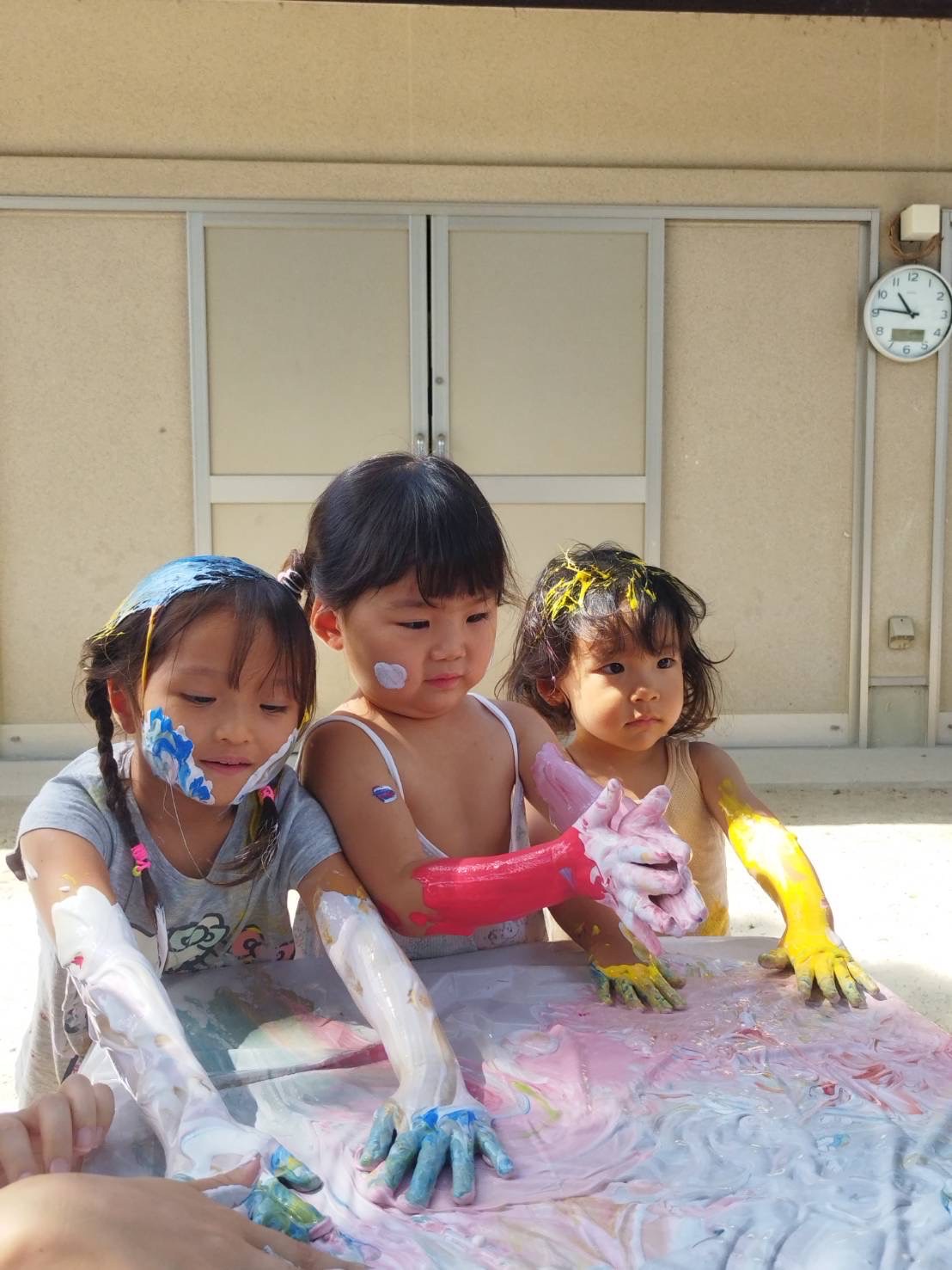 9月も引き続き暑い日が続いていたので、水遊びやボディペイントをし、全身を使って遊ぶことを楽しんでいました。