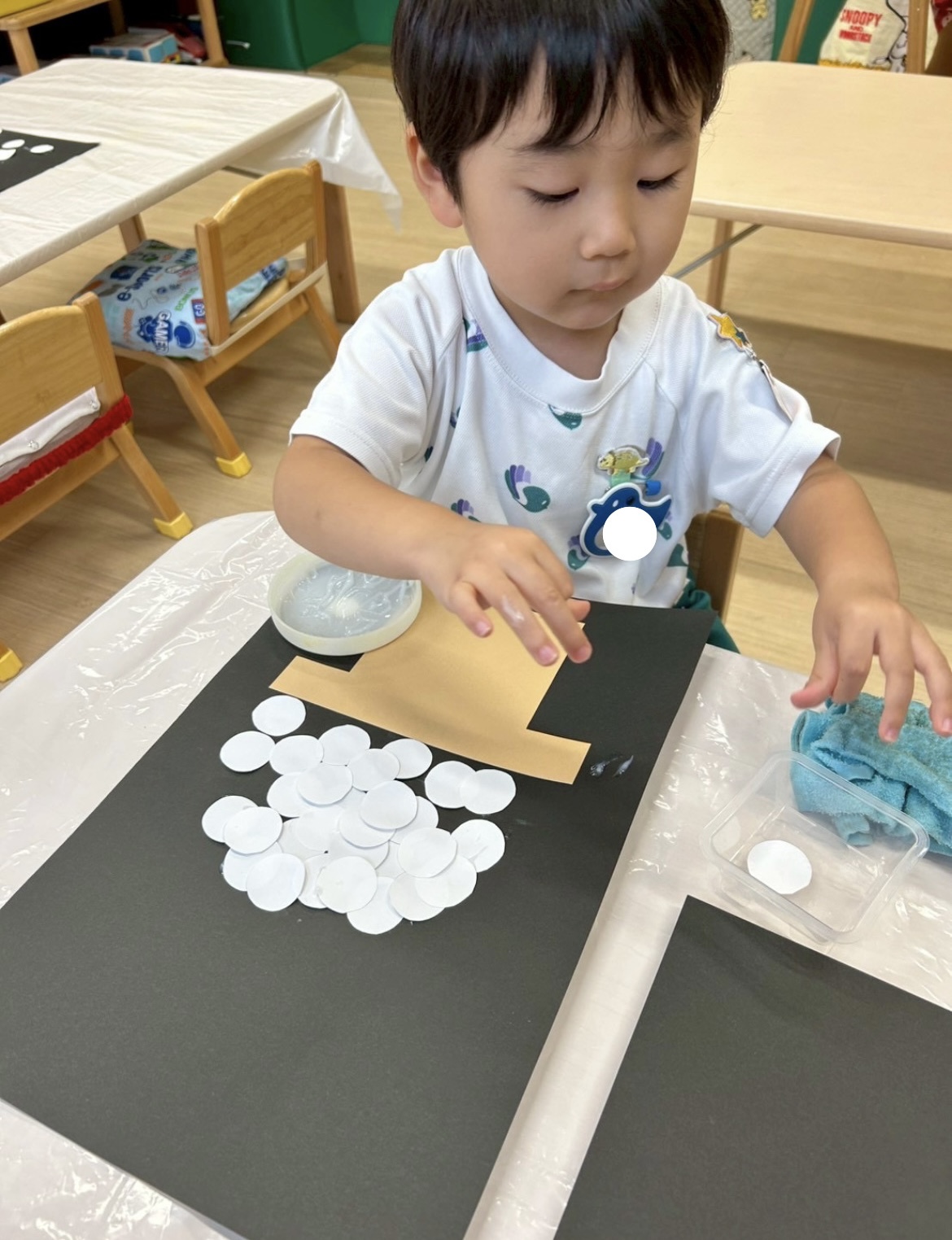 またお月見のシール貼りをしたり、木の砂場で遊んだりするなど毎日笑顔で過ごしています!
