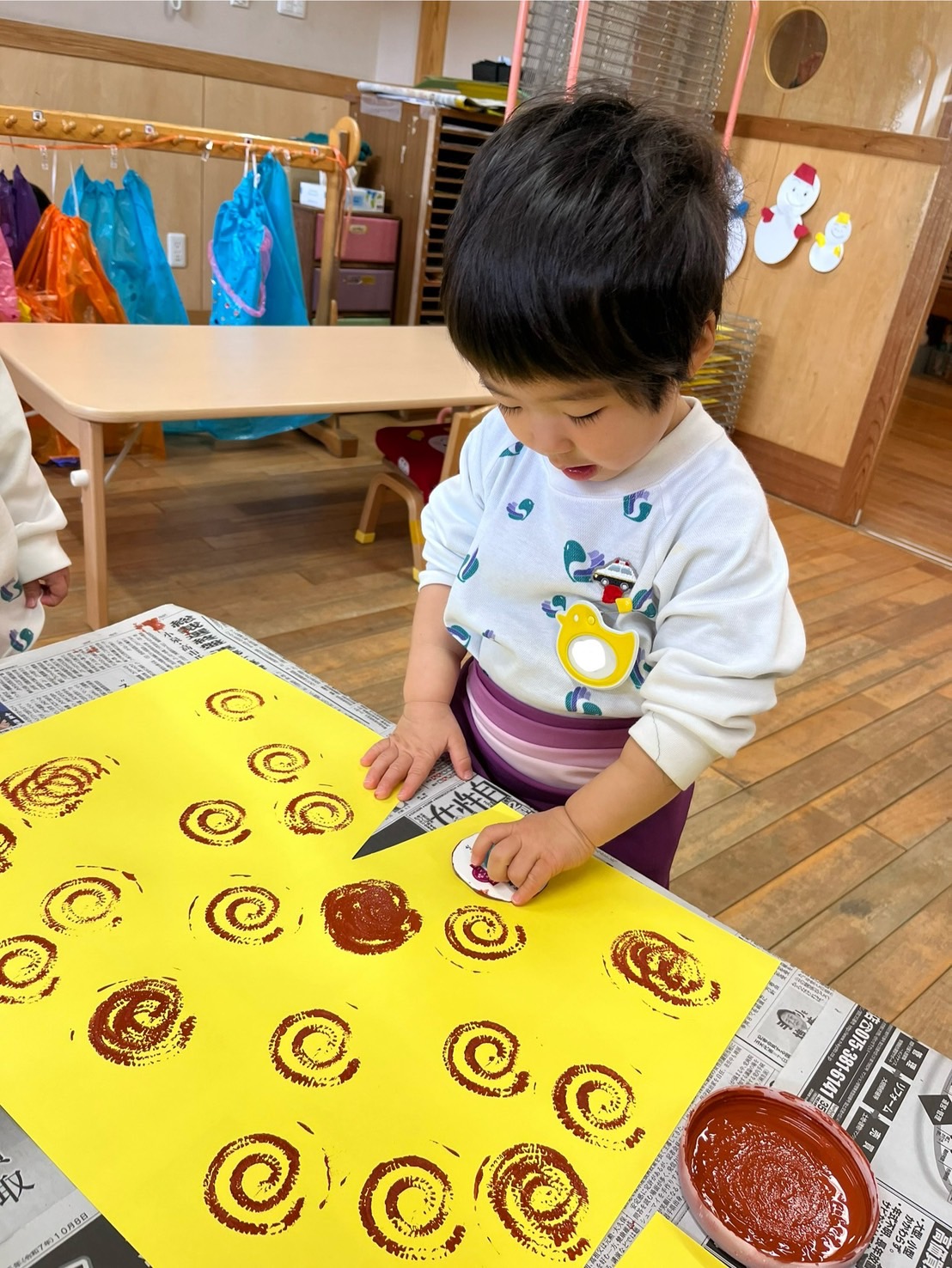もうすぐ2月!ということは・・・節分で鬼がやってくる?!と少しドキドキしている子ども達。ドキドキしながらも節分の日に親しめるよう、鬼の被り物やパンツの製作をしたり、鬼と戦う用の新聞紙豆をつくって備えたりしながら、過ごしています。