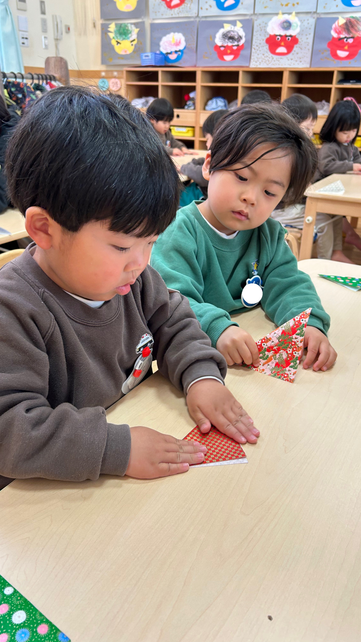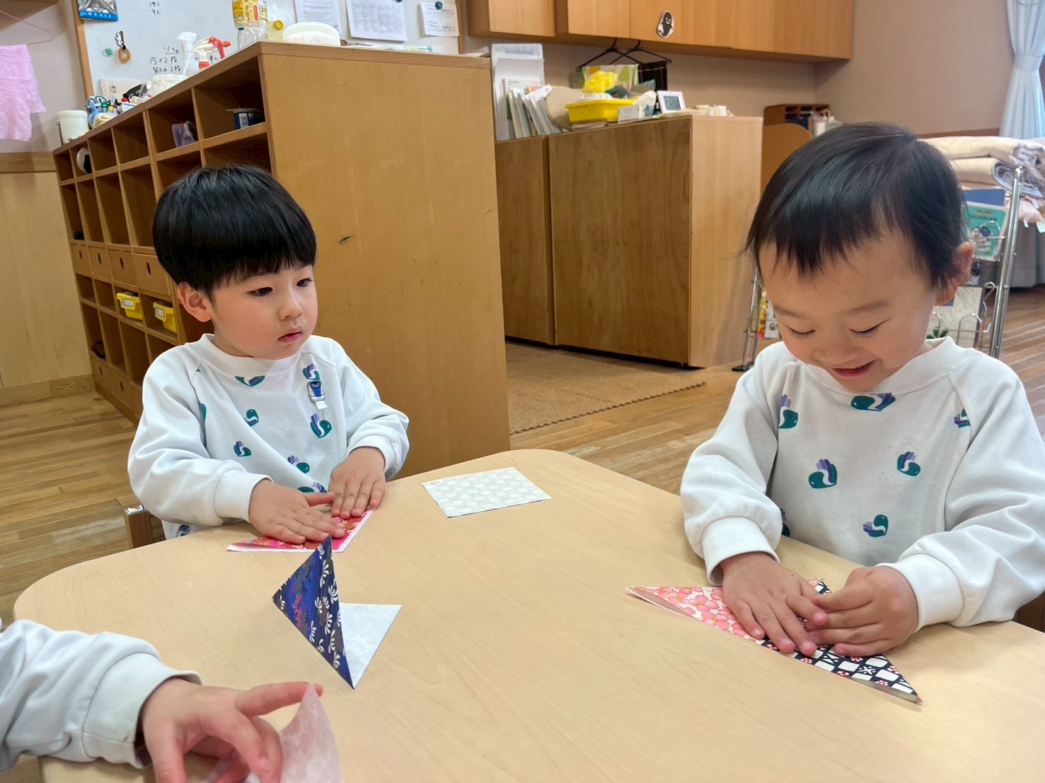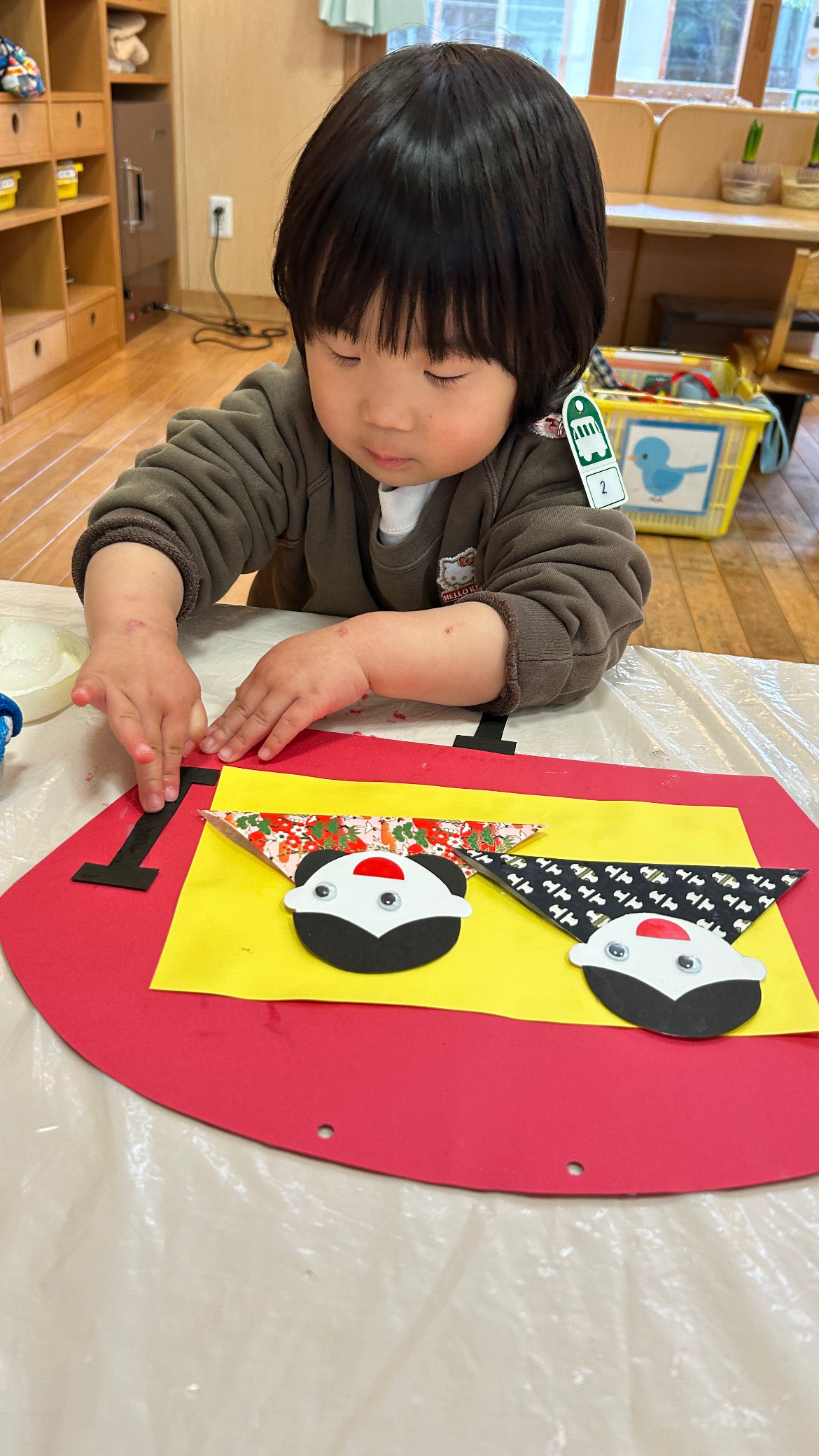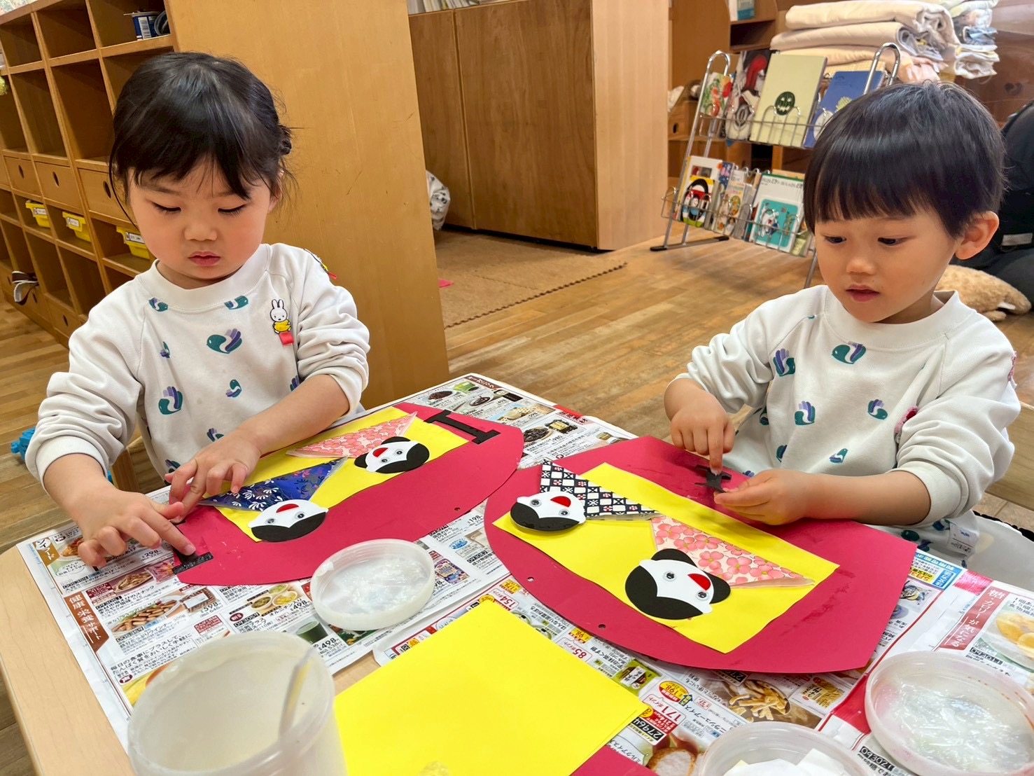 ことり組の子ども達も、幼稚園に飾ってある雛人形をみたり、雛飾りを製作したりして、ひな祭りに親しむことができました。