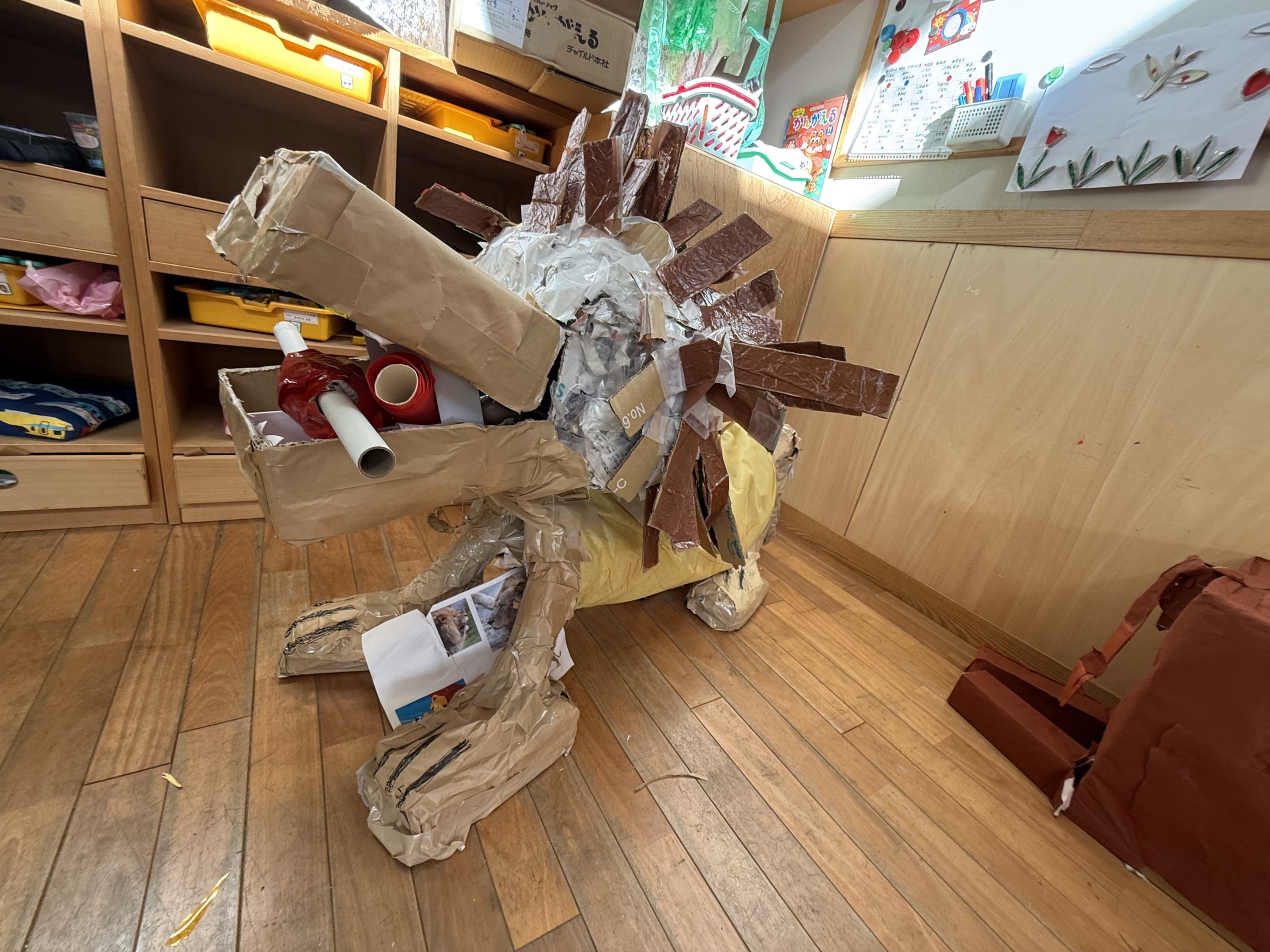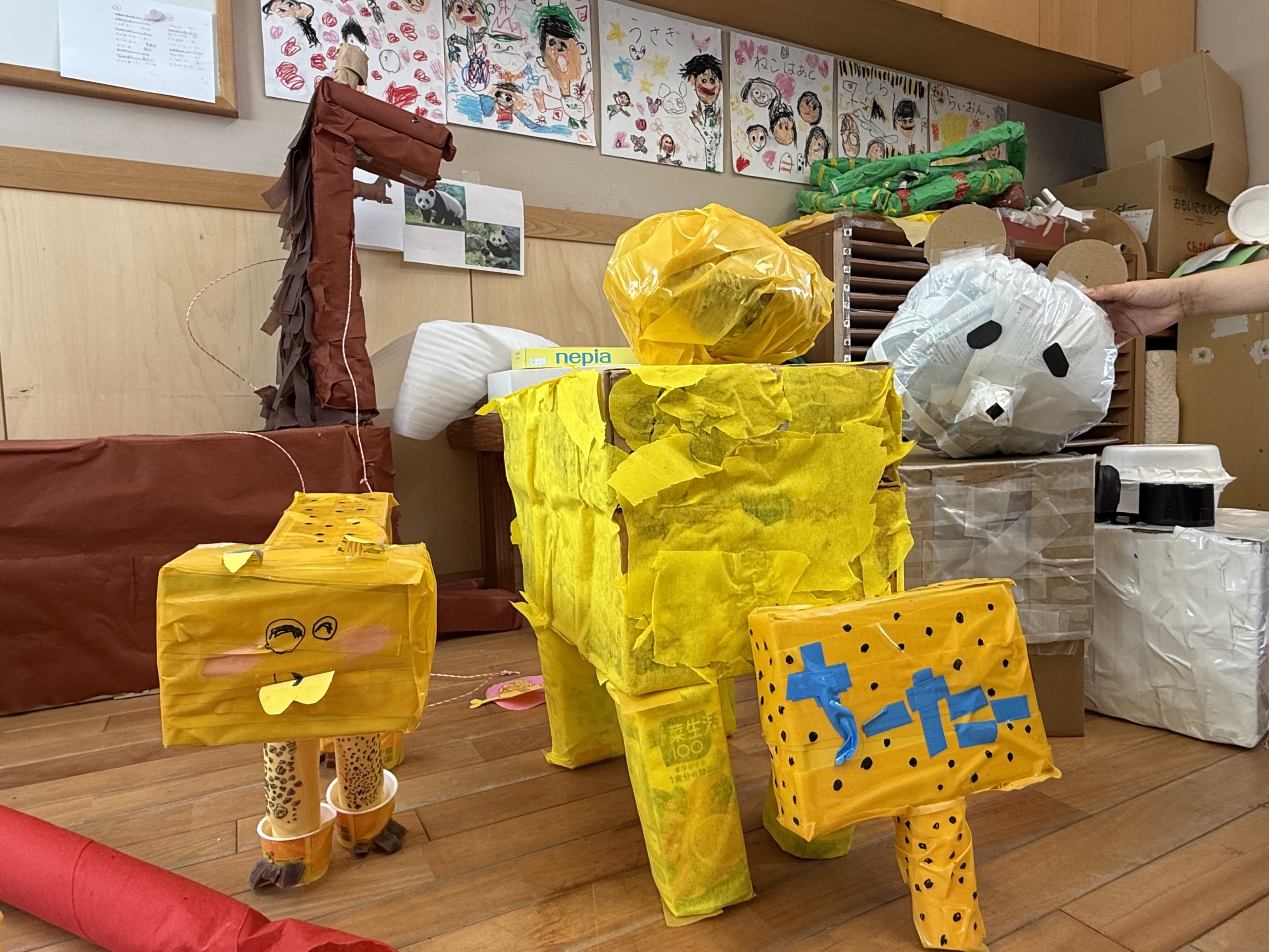 みんなで行った動物園。そこで見た迫力ある本物の動物をみんなで作ってみたくて力を合わせました!