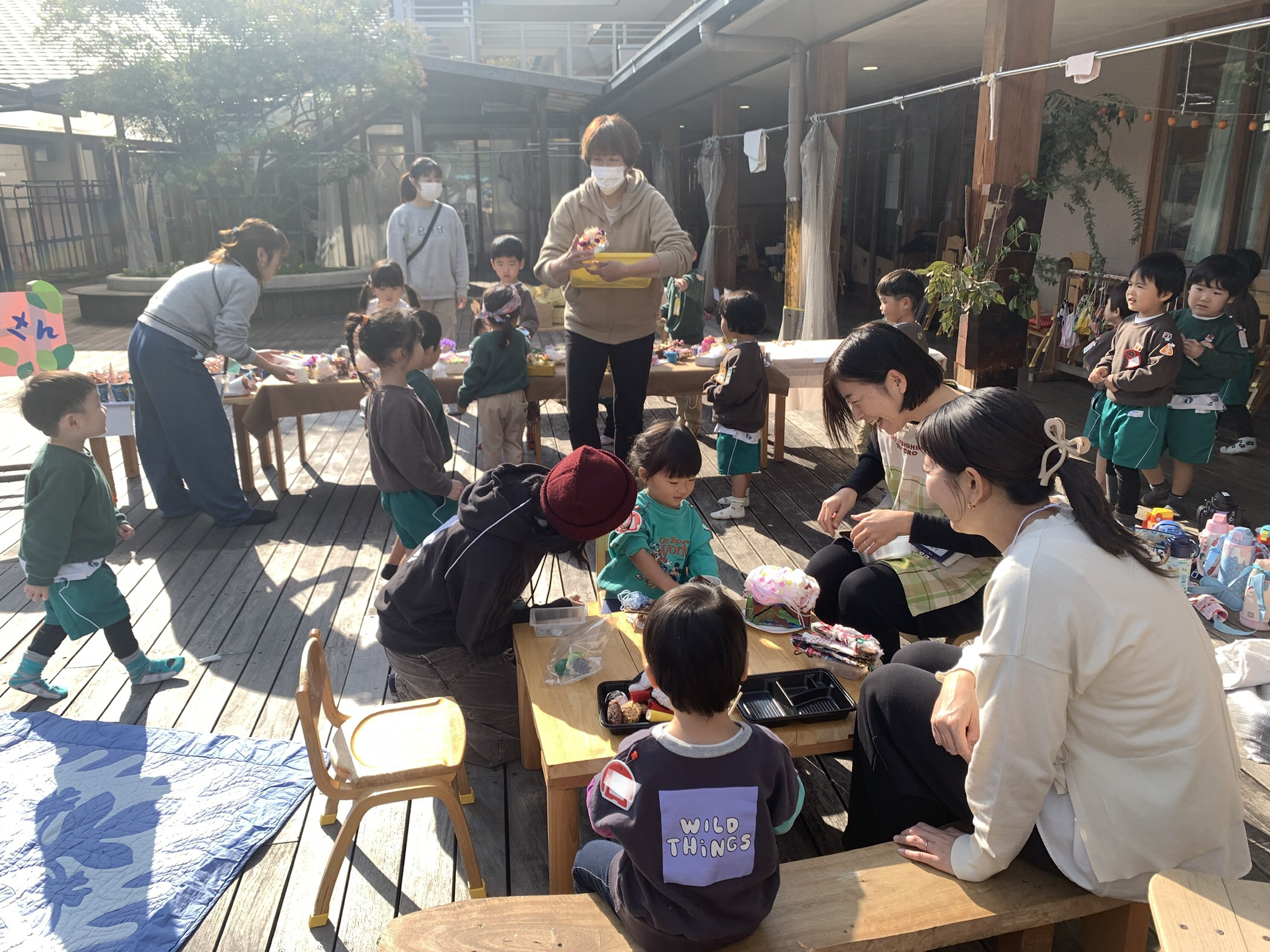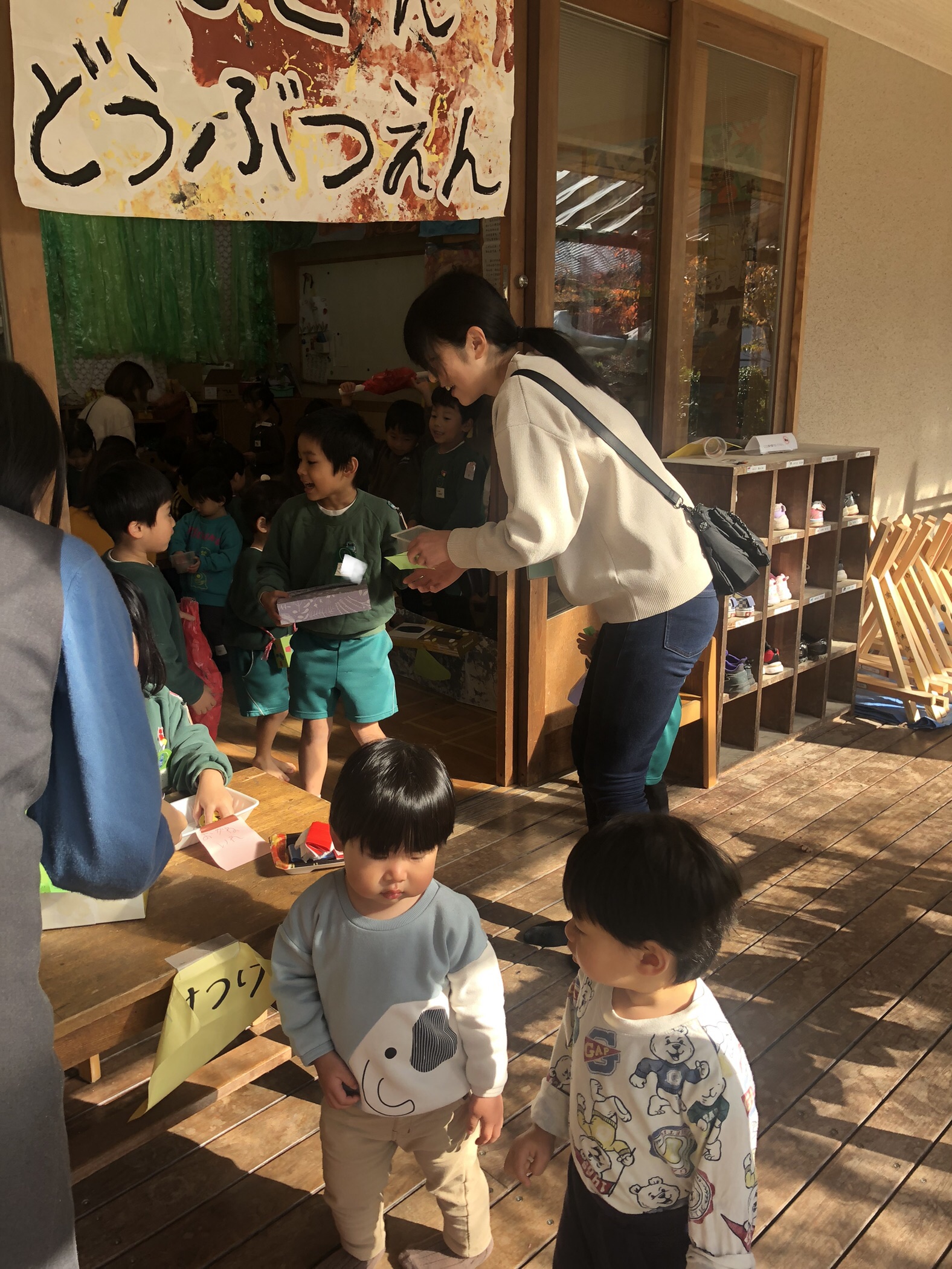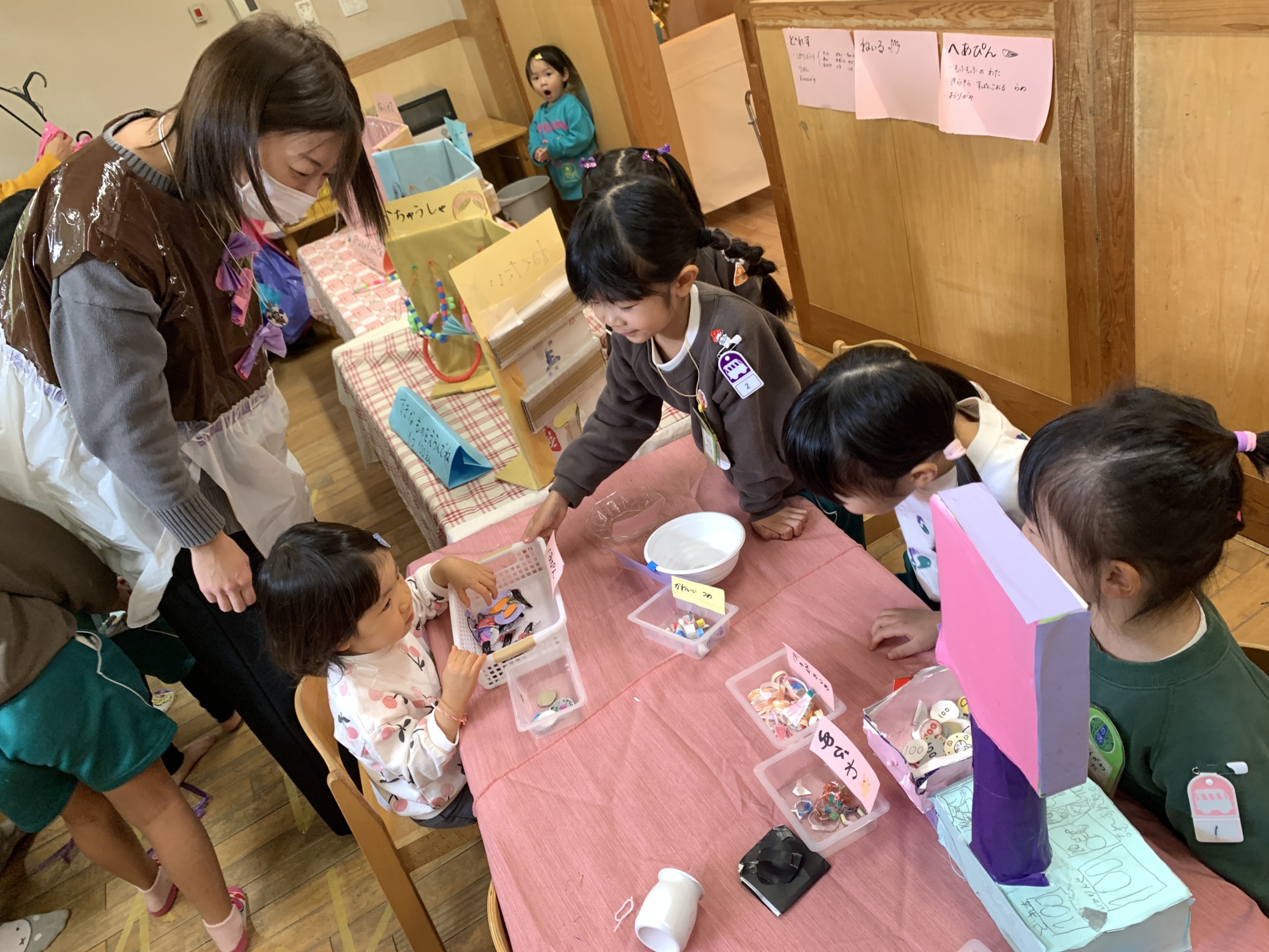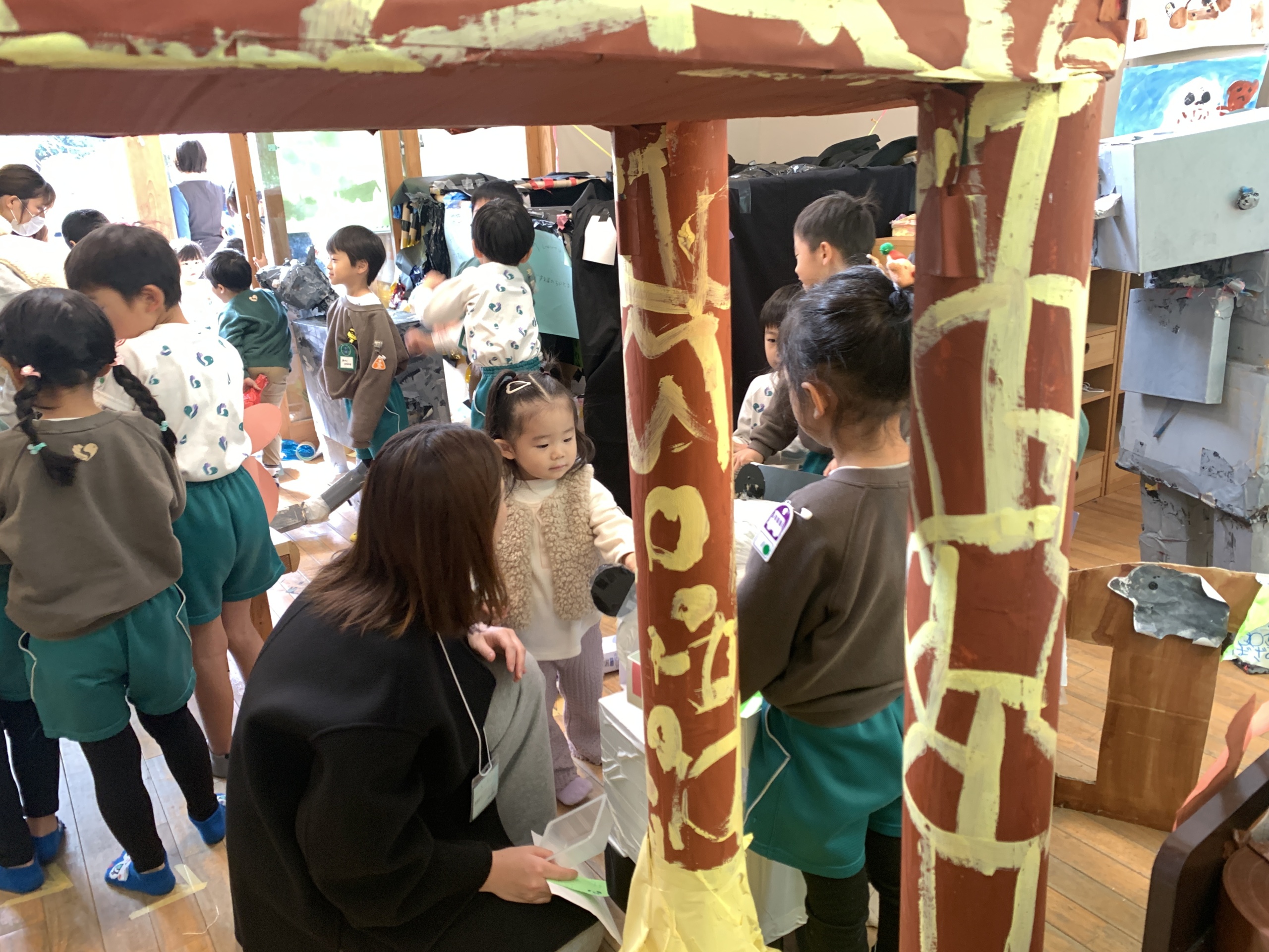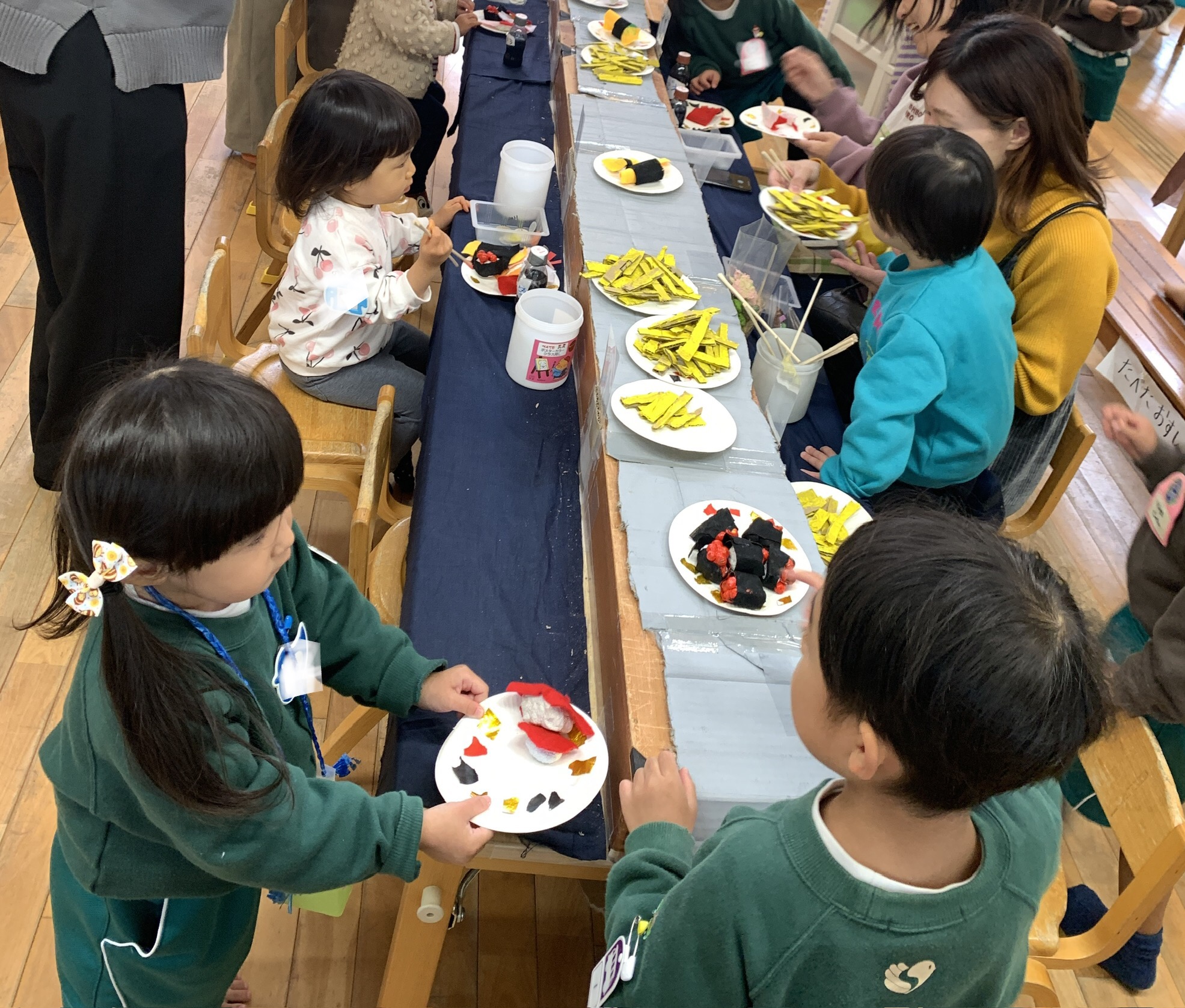 年中、年長ぐみさんとのお店屋さんごっこはとっても楽しかったですね!ドキドキお買い物をしたり、モグモグ食べる真似をしたり、年長児の勢いに圧倒されたり、たくさんの刺激をもらいましたね。3学期も様々な体験や交流を通して更に幼稚園に親しみが持てるような、そして入園が楽しみになるような活動をしていきたいと思います。