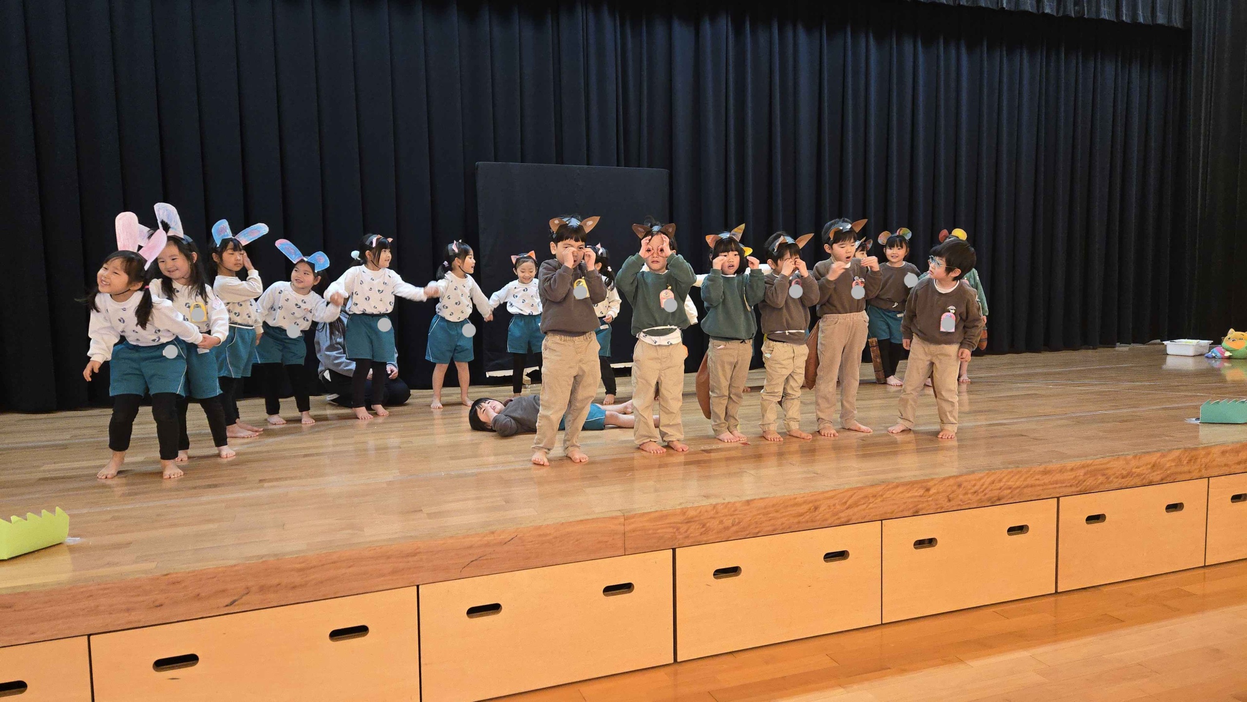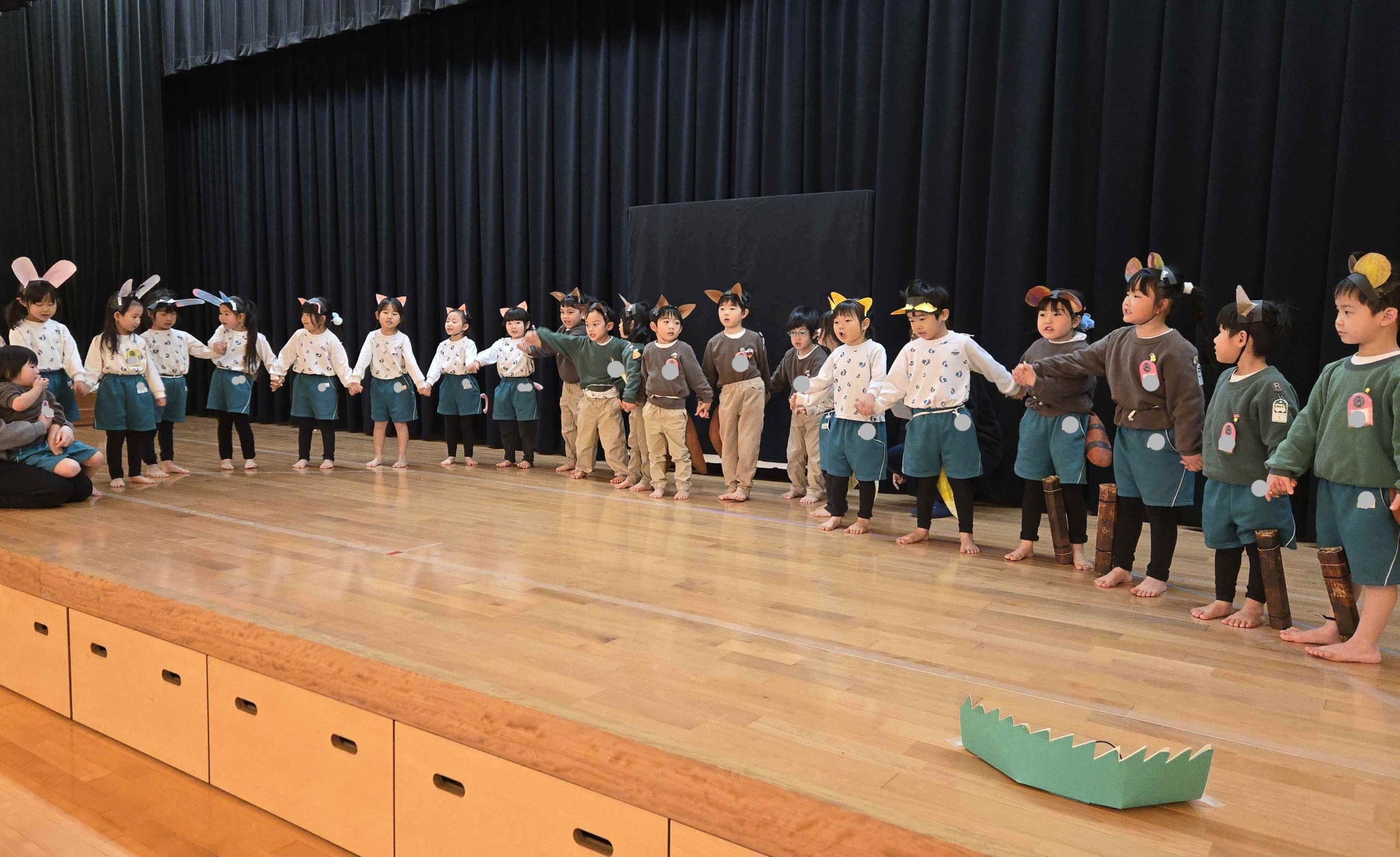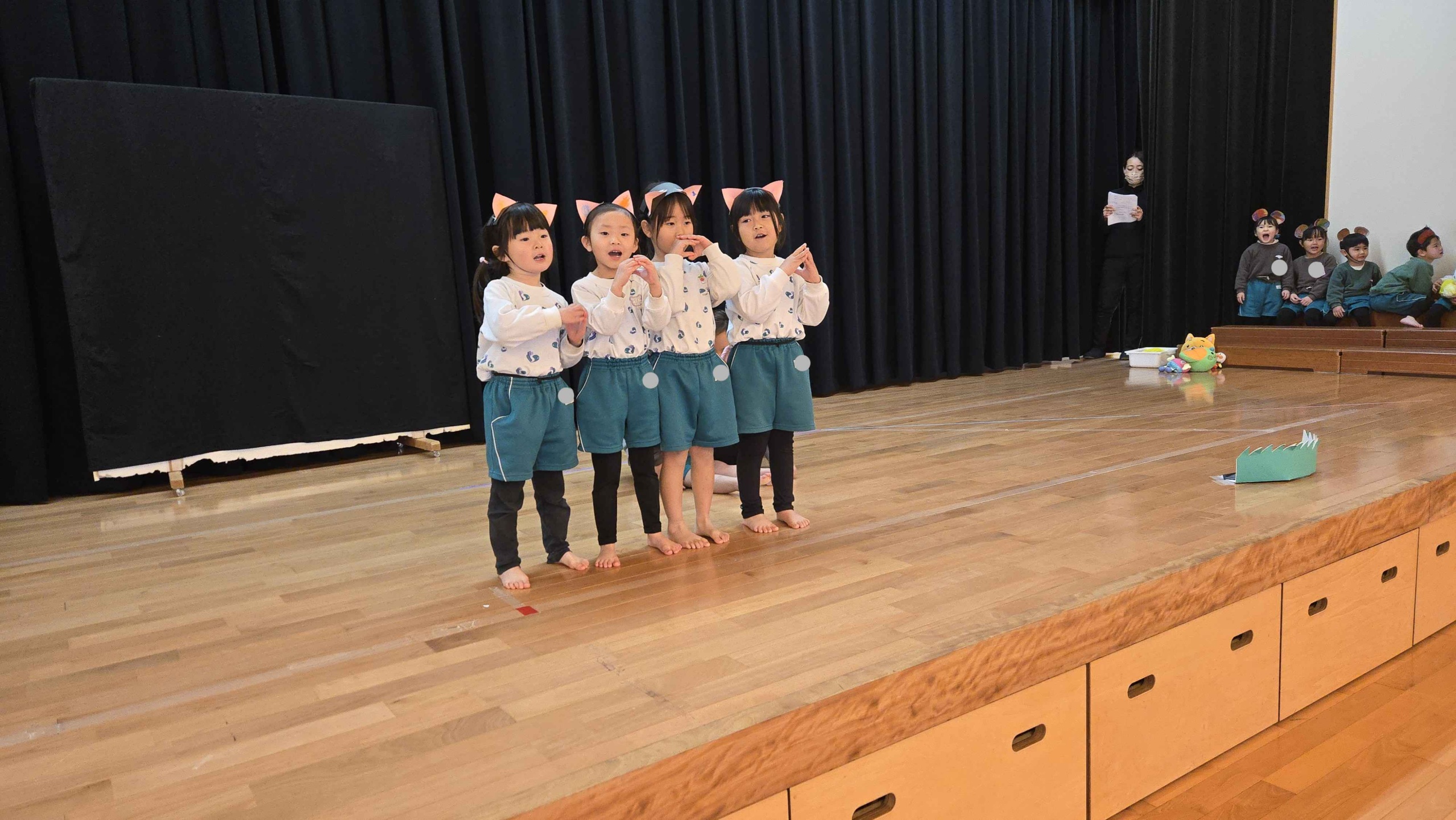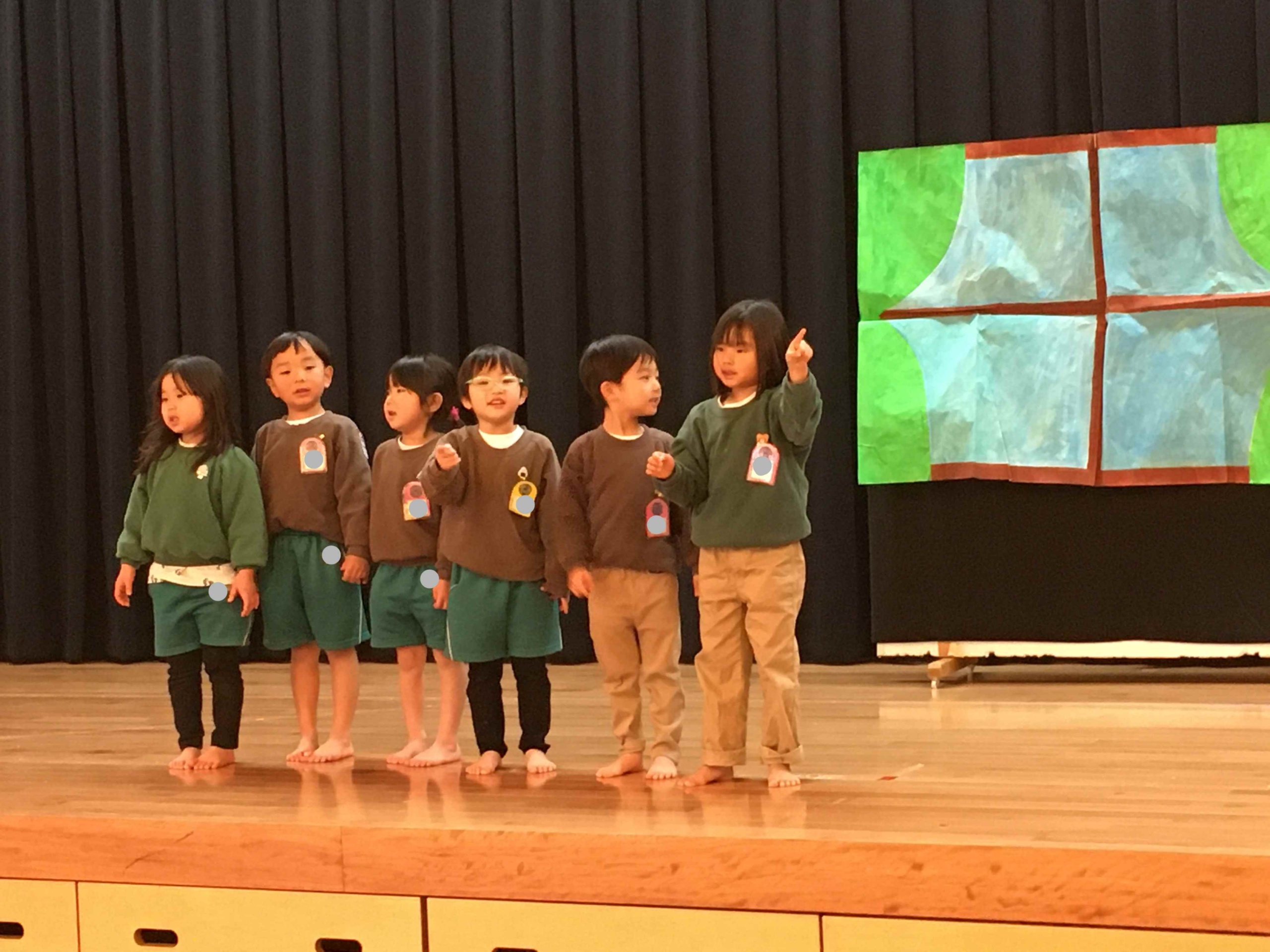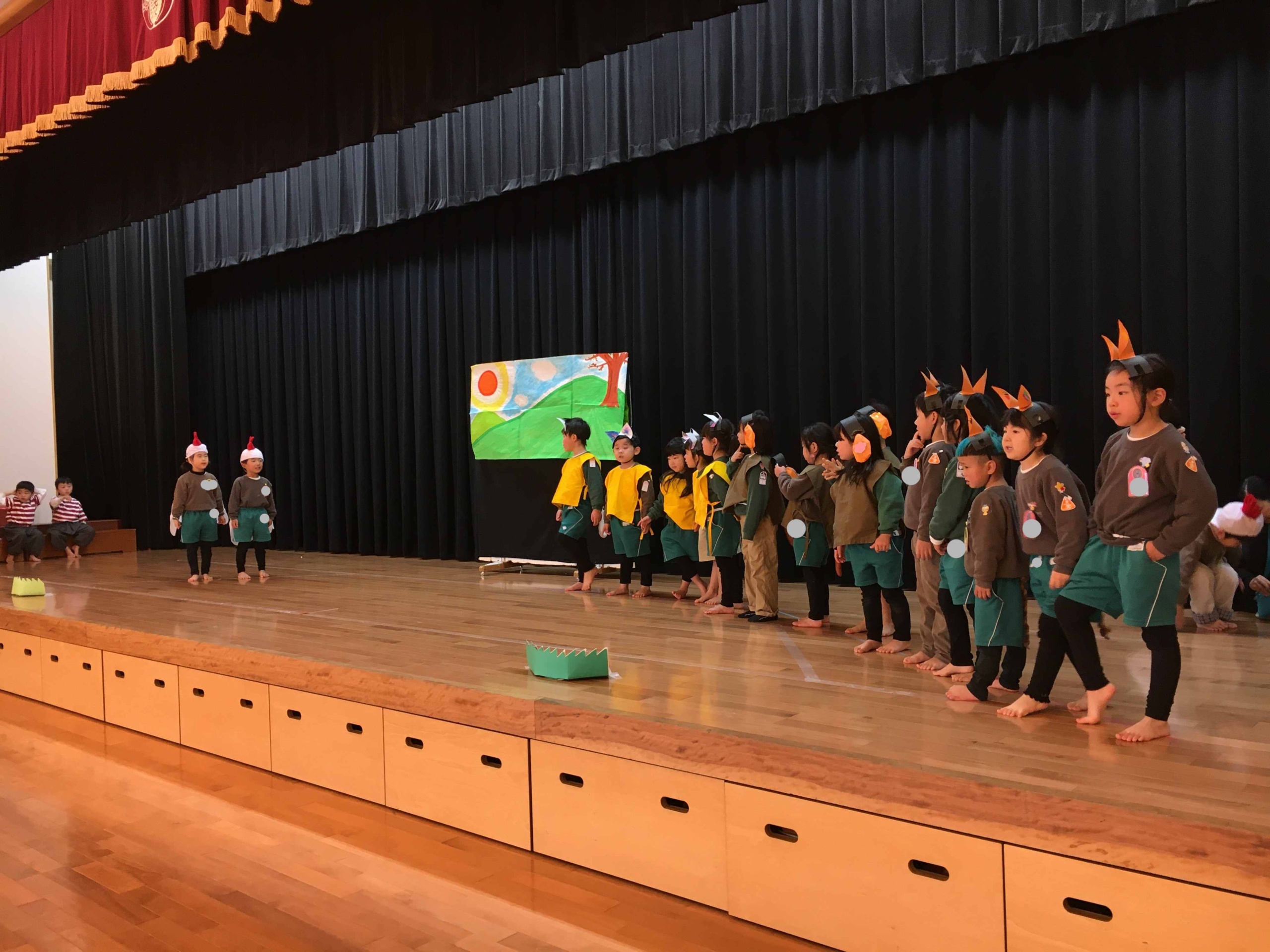 2月には、みのりの会(生活発表会)があり、年中組はお話あそびをして、お客さんに見てもらいました。