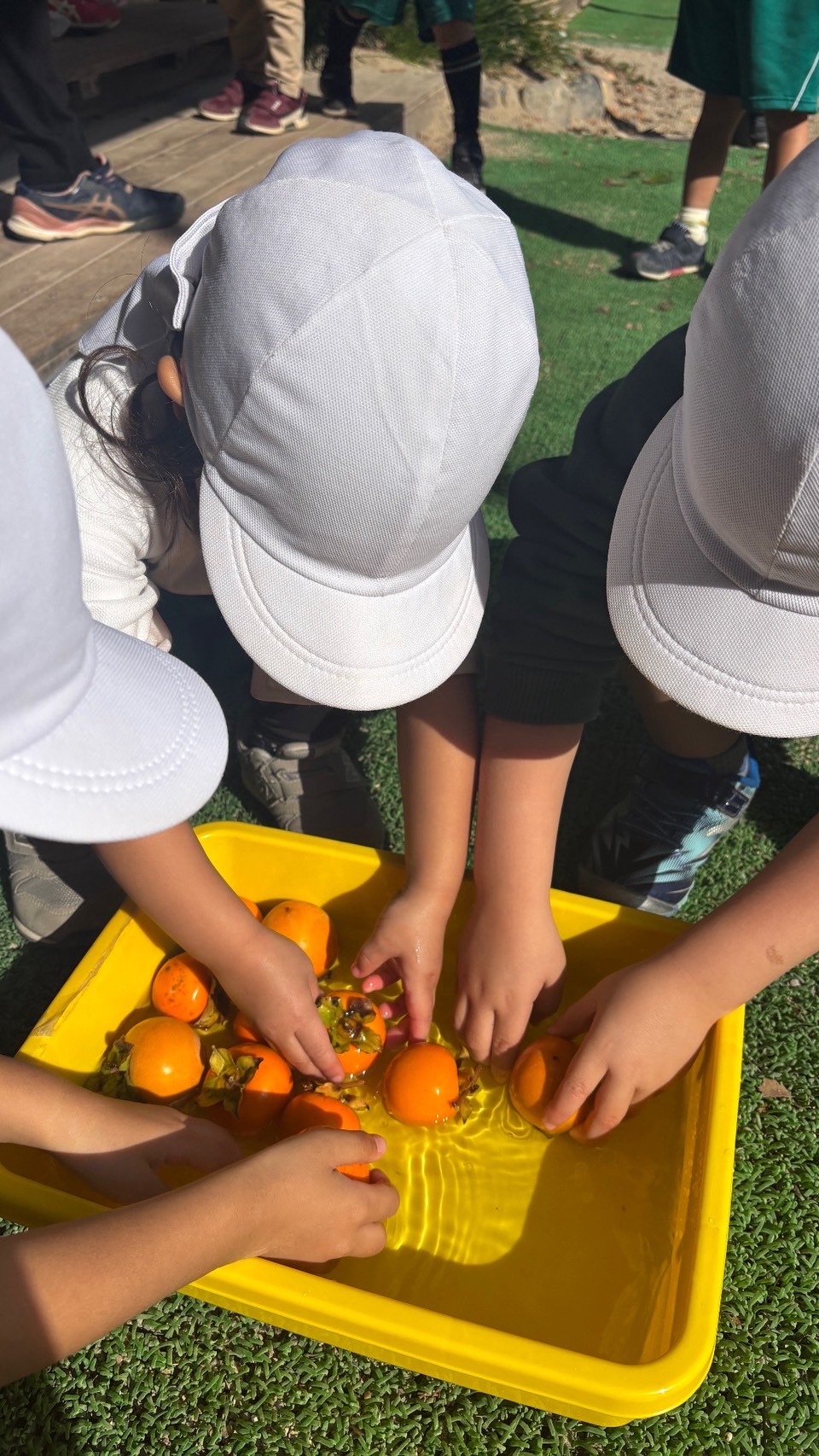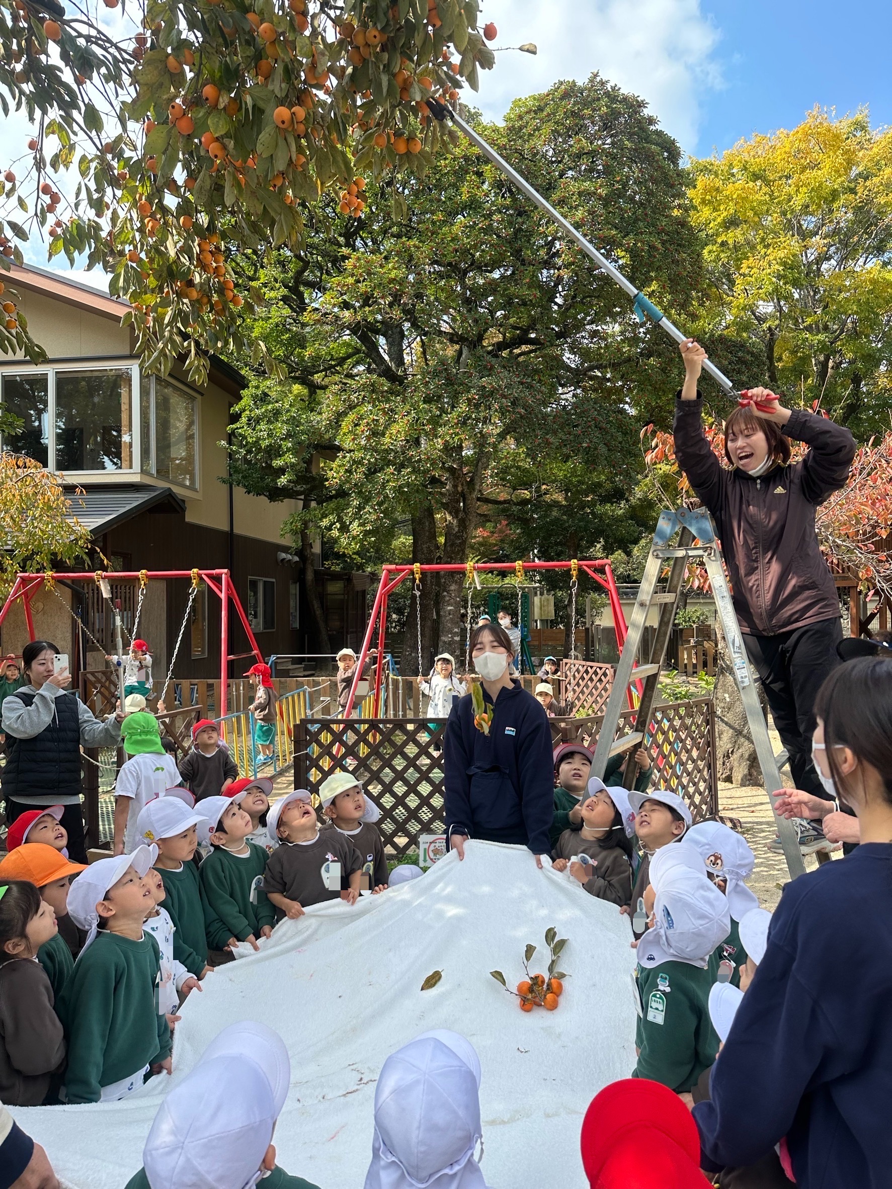 銀杏・ザクロ・フェイジョアなど、幼稚園で採れる果実が旬を迎え、収穫や試食を楽しんでいます。渋柿も『さわし柿』にして渋を抜いて美味しく食べました。